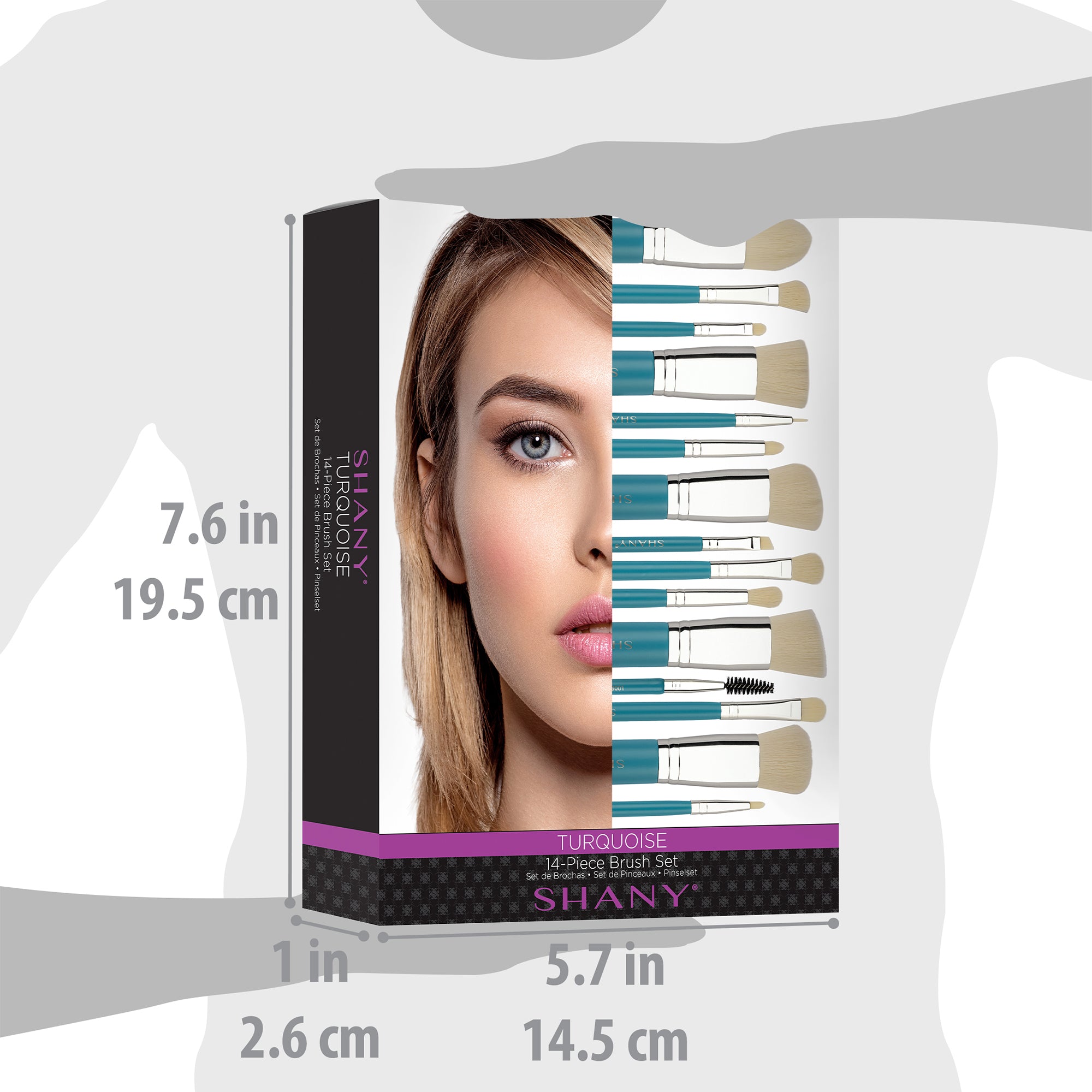 ● Size: 7.600" X 5.700" X 1.000"Listen up, bombshells! SHANY Bombshell Brush Set can easily transform your makeup collection with their beautiful charcoal tones. This 14-piece brush set is made with professional grade synthetic bristles with a gorgeous ombre design, that are curved for all face shapes. This wooden cosmetics brush set includes eight eye brushes, five faces brushes and one dual-ended brow brush. Use with ease as the cruelty-free brushes include an instructional pamphlet with brief descriptions on how to use every brush. Designed in the USA, these brushes are best paired with our Detox Professional Brush Cleanser.